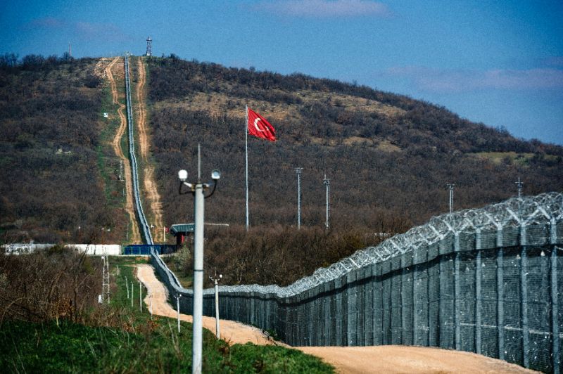 A Turkey’s border police personel stands on a watchtower overlooking a barbed wire wall fence erected on the Bulgaria-Turkey border near the town of Lesovo, on September 14, 2016. / AFP / NIKOLAY DOYCHINOV (Photo credit should read NIKOLAY DOYCHINOV/AFP/Getty Images)