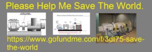 https://www.gofundme.com/f/a9q7qk-save-the-world (This is our new campaign) https://www.gofundme.com/f/3dt75-save-the-world (they reinstated) I am asking for donations to keep these sites operational and to develop a Fuelless Generator that can replace your Wind and Solar technologies. This Fuelless Generator can run 24 hours a day, 7 days a week, and 365 days a year. If you want a … Continue reading Save The World.