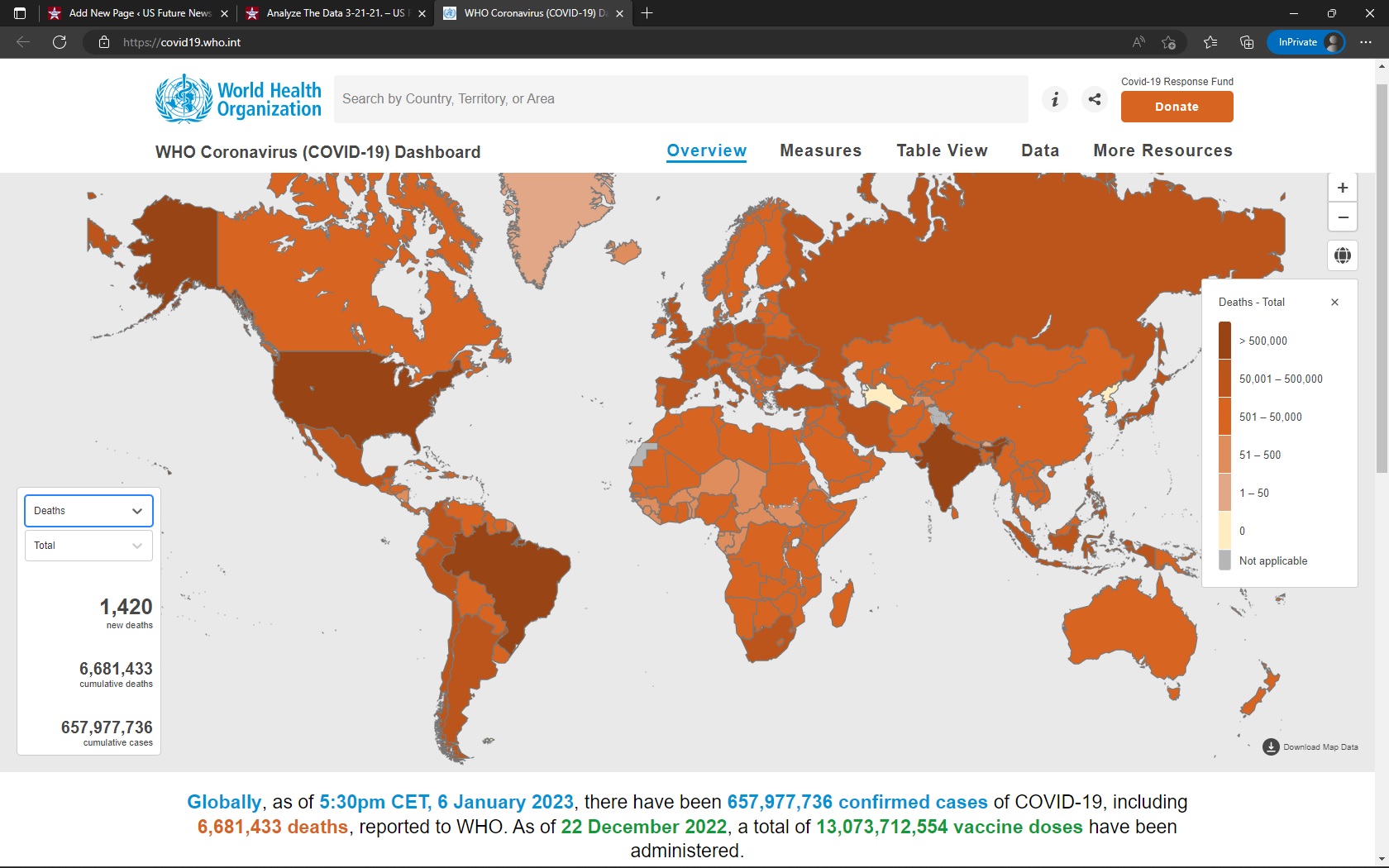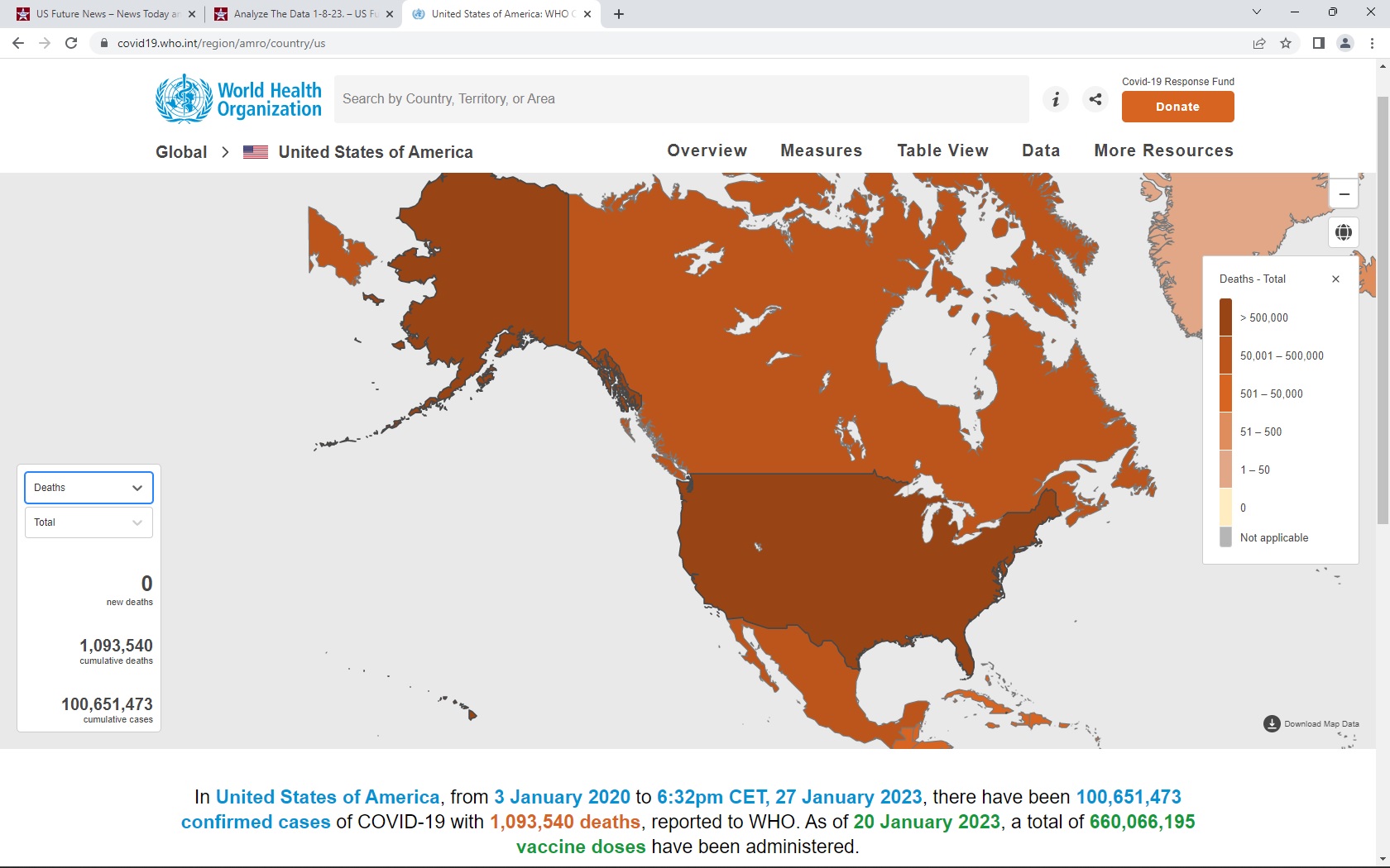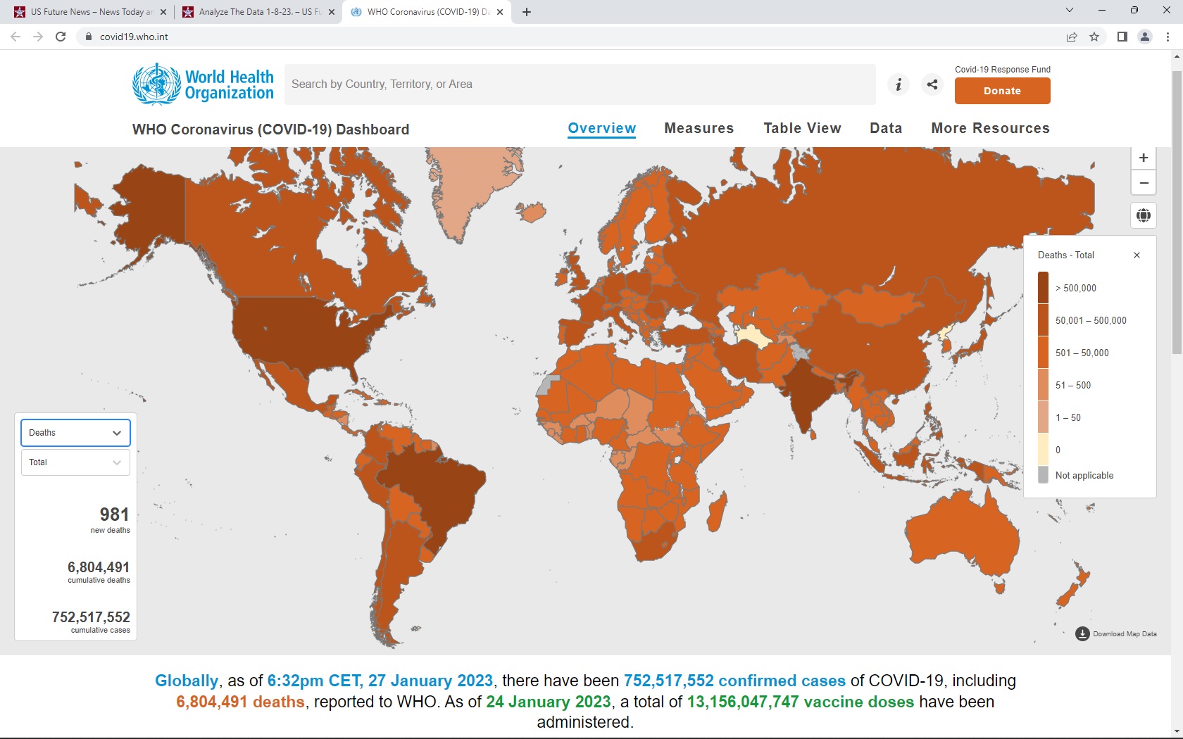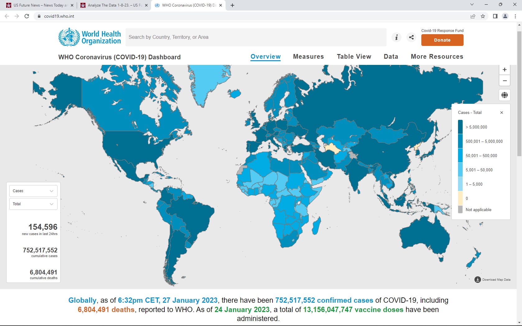 Analyze The Data 1-29-23. The numbers do not justify the actions. Please have the World and United States Healthcare Professionals explain why we have lockdowns, and shutdowns, as well as mandatory mask and social distancing, for mortality and contagion rates less than the Common Flu? Third world countries have not collapsed, and systems are not overwhelmed. We have almost no Common Flu cases in the US and Worldwide, so we have more than enough facilities and healthcare workers for Covid-19 response, if they bring staffing back up to normal.