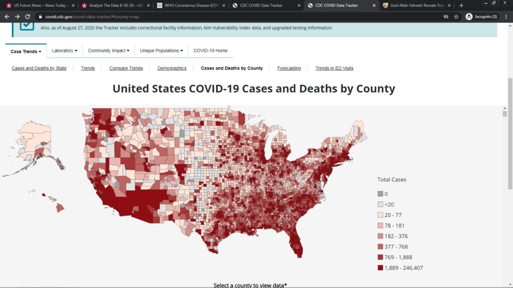 The World has seen less than 27 million cases and less than 1 million deaths, since the beginning of this pandemic. We see effective preventatives and treatments being denied to the general population, but used by the elite when they contract COVID-19. The suffering and deaths inside the United States of America, are due to greed, politics, and EVIL. Remember you have the ‘Right to Try’. We are also seeing the Association of American Physicians and Surgeons, suing the FDA and HHS so HCQ and Zinc can be used in outpatients. Quercetin and Zinc is another combination that is reported to work. The wearing of masks for long periods of time can lead to serious infections and death, but you do not hear the healthcare professionals saying this. You can simply read the warning printed on the N-95 masks. The breathing in of harsh cleaning chemicals, can also cause many medical conditions.