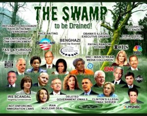 Draining The Swamp. The Corruption is about to be exposed and the Coup attempt will be brought to light. The EVIL Un-American Radical Globalists/Democrats/Liberals know that they are in Trouble and that their Resistance has Failed to oust President Trump. They have Spies in the WhiteHouse and Resistance Members throughout our US Government. They have … Continue reading Draining The Swamp.