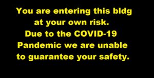 At Your Own Risk. Place these signs at all entries and then liability will fall upon those entering your building. Entering hard hat area, entering construction area, authorized personnel only, these premises under video surveillance, and do not enter, all provide liability protection, so the above signage should provide the same. God-Allah-Yahweh Bless And Protect … Continue reading At Your Own Risk.