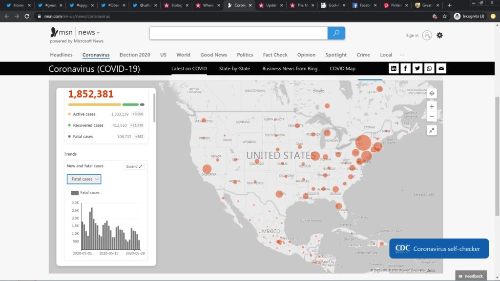 The United States has 25% of both infections and deaths worldwide. Statistically this is impossible because the United States has less than 5% of the world population. Do the math. We are approaching summer, and the spread of any virus is minimal due to increased sunshine, heat, humidity, and if allowed in the sun, absorption of vitamin D. Masks build up bacteria with extended use and will increase lung infections in those uses them. Lung damage can also occur with inhalation of cleaning chemicals and disinfectants in closed spaces. The social distancing measures of 6 feet are for winter, and now that we are about to enter summer what should they be? Fresh air, sunshine, and exercise, are all highly beneficial, yet we are being told to practice these stupid mitigation, and social distancing measures, during a period when the life of the virus is almost zero if not zero. If you catch the virus, what is your chance of dying from it? 0.1 to 0.4 percent chance of dying, that is all.